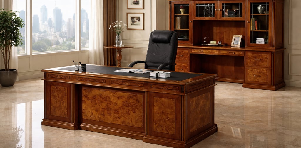 Los muebles de oficina lujosos representan una inversión a largo plazo. El uso de maderas finas y procesos de fabricación de alta calidad garantiza durabilidad, presencia y un valor estético que perdura con el tiempo.